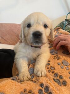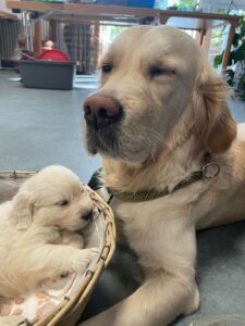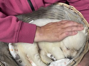 Mit fünf Wochen werden die Welpen immer mutiger und vielseitiger in ihren Erfahrungen. Erste Ausflüge außerhalb des gewohnten Bereichs gehören inzwischen zum Alltag. Dabei lernen sie unter ruhigen, stressfreien Bedingungen neue Menschen, Räume und Situationen kennen.